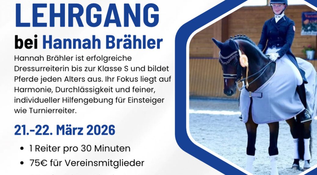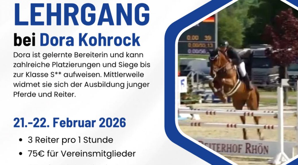 Bitte tragt euch diese Termine fest in eurem Kalender ein, damit ihr mit von der Partie(y) seid. Wie immer werden viele fleißige Helfer gebraucht, um Reitern, Pferden und Zuschauern ein tolles Programm zu bieten und eine erfolgreiche Durchführung zu garantieren. Natürlich sollen auch wieder zahlreiche Reiter und Zuschauer vor Ort sein, deshalb nutzt gerne die Flyer im Anhang, um kräftig Werbung zu machen.