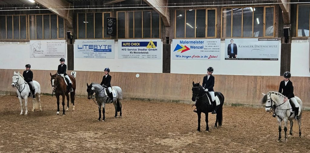 Am Sonntagmorgen machten sich unsere jungen Reiterinnen unter der Leitung von unserer neuen Jugendwartin Janine Rüppner auf den Weg zu unserem Nachbarverein beim RuFV Schlitz zu einem WBO- Turnier.